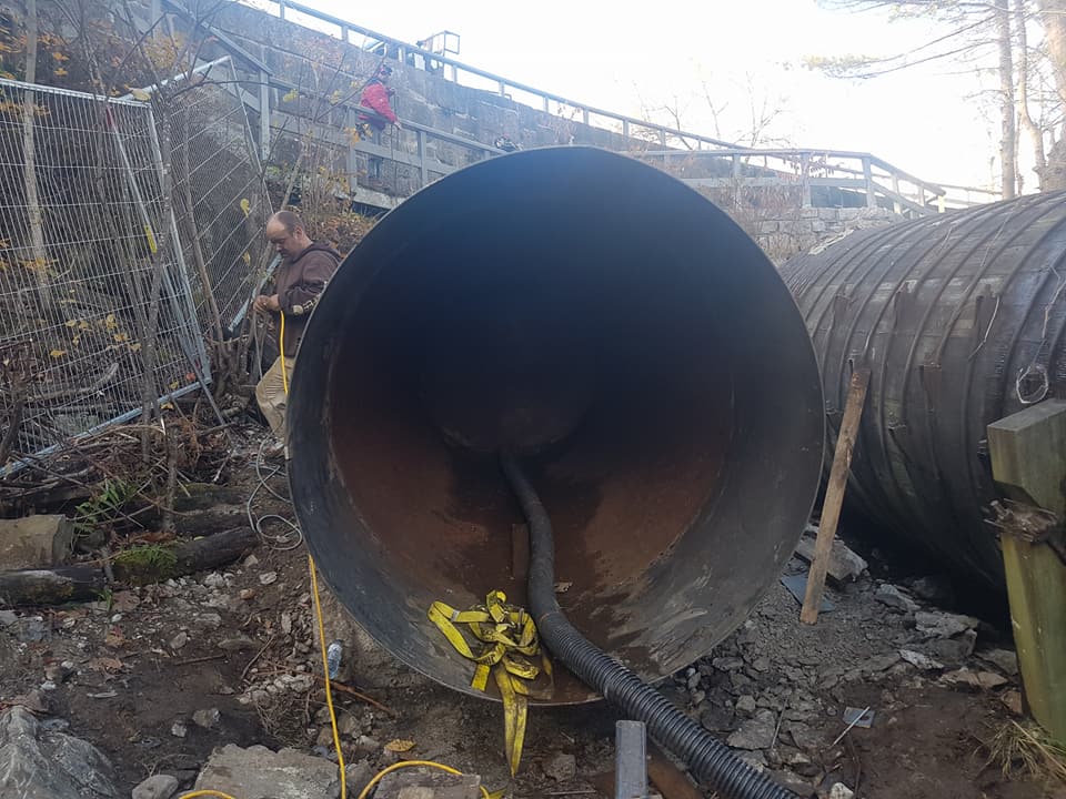 Jones Falls Project Posted on December 14, 2017December 14, 2017 by Chris We recently completed a complex job at Jones Falls for Parks Canada, where we modified and replaced portions of the thimbles at the pen stocks, as well as fabricating and installing a walkway over the penstock. Thimble Image 5 of 8